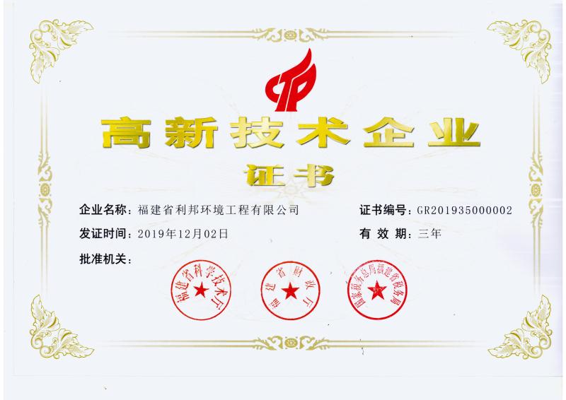 福建省利邦環境有限公司創建于2006年12月,座落在福建省莆田市涵江區國家級高新技術產業園區,是國家高新技術企業、